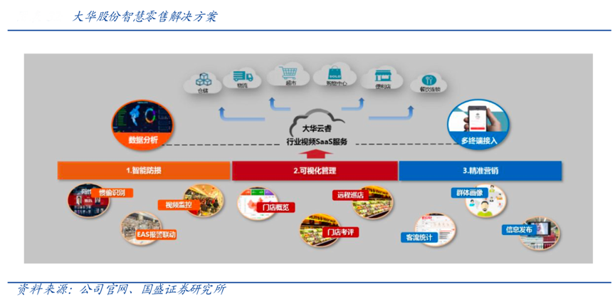 經(jīng)典案例:根據(jù)公司官網(wǎng)、國盛證券研究所等綜合資訊表明,大華股份面向商超連鎖、汽車零售、品牌專賣、百貨賣場等業(yè)態(tài),助力客戶高效運營、精準營銷、安全防損、升級體驗。阿里新零售與銀泰合作的全球首發(fā)標桿店生活美學館,引入大華股份旗下民用品牌,雙方在智慧零售方面進行更深入合作。