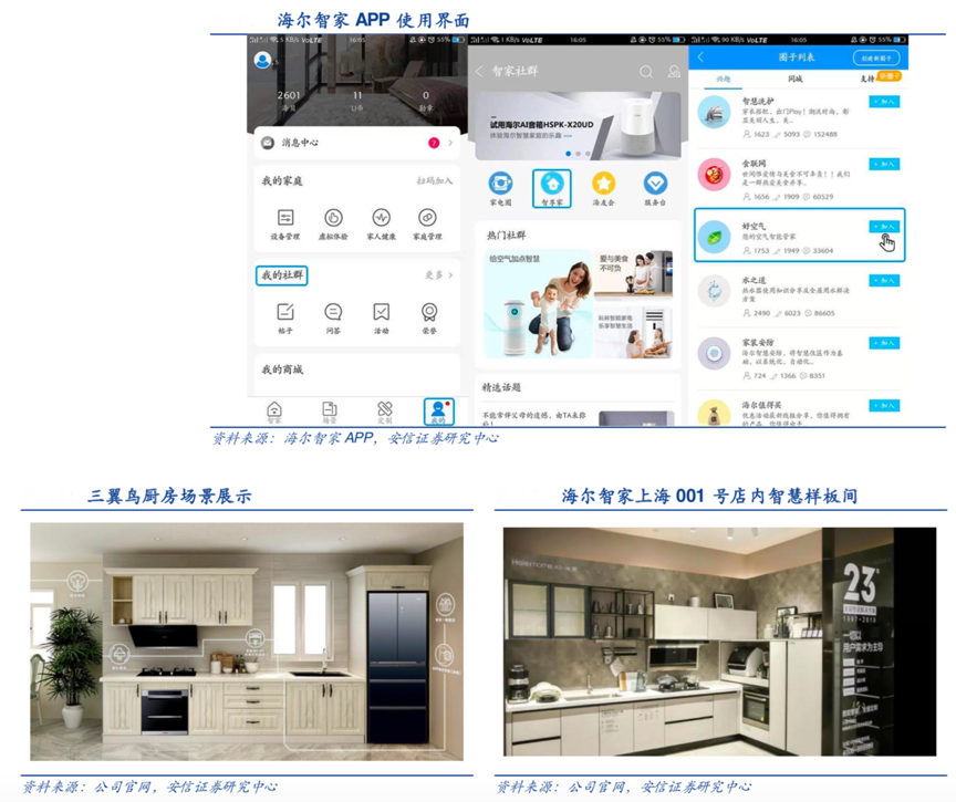 經(jīng)典案例:根據(jù)公司官網(wǎng)、海爾智家APP、安信證券研究中心等綜合資訊表明,2020 年 9 月,海爾智家發(fā)布了全球首個場景品牌——三翼鳥。其可以為用戶提供涵蓋 陽臺、廚房、客廳、浴室、臥室等智慧家庭全場景定制化解決方案。其以用戶場景需求為中心,創(chuàng)新提供可體驗、可定制、可迭代的智慧生活解決方案,滿足消費者全空間、全維度、全流程的場景生活需求,進(jìn)一步拉動海爾多品類協(xié)同銷售。
