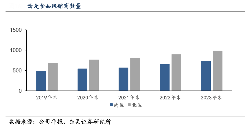 經(jīng)典案例:根據(jù)公司年報、東吳證券研究所等綜合資訊表明,截止2023年底,西麥食品合作經(jīng)銷商達到 1718 個,招商加速,已經(jīng)建立起龐大的經(jīng)銷系統(tǒng)。經(jīng)銷商網(wǎng)絡(luò)已經(jīng)覆蓋到三四線城市縣城及重點城市鄉(xiāng)鎮(zhèn)門店,并且根據(jù)公司戰(zhàn)略,將會針對地域開展專項策略,積極拓展重點城市在進場零售業(yè)態(tài)的鋪市滲透,進一步對優(yōu)勢區(qū)域渠道下沉。