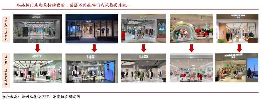 經(jīng)典案例:根據(jù)公司業(yè)績會(huì)PPT、浙商證券研究所等綜合資訊表明,江南布衣逆勢升級門店形象,不同品牌門店風(fēng)格更為統(tǒng)一發(fā)揮多品牌協(xié)同效應(yīng)。公司從客流量 低谷期 FY2021 財(cái)年逆勢升級門店形象,最新一代店鋪形象顯著提升線下門店消費(fèi)者進(jìn)店意愿。