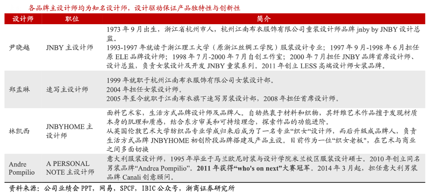 經(jīng)典案例:根據(jù)公司業(yè)績(jī)會(huì)PPT、網(wǎng)易、SPCF、IBIC公眾號(hào)、浙商證券研究所等綜合資訊表明,設(shè)計(jì)驅(qū)動(dòng)下的優(yōu)質(zhì)產(chǎn)品是江南布衣的核心競(jìng)爭(zhēng)優(yōu)勢(shì),公司始終堅(jiān)持對(duì)設(shè)計(jì)的持續(xù)投入,對(duì)產(chǎn)品設(shè)計(jì)的選用和管理設(shè)置了嚴(yán)格的標(biāo)準(zhǔn),除了深耕行業(yè)多年的設(shè)計(jì)師團(tuán)隊(duì)外,公司成立了由 CEO、COO、CMO、CFO 等核心高管構(gòu)成的創(chuàng)意設(shè)計(jì)審核管理小組。