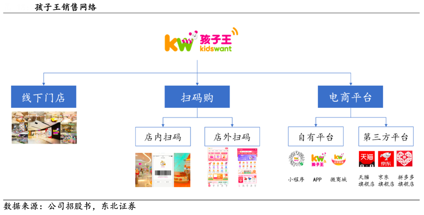 經(jīng)典案例:根據(jù)公司公眾號(hào)、天貓旗艦店、東北證券等綜合資訊表明,孩子王公司拓展出線下門(mén)店、掃碼購(gòu)和電商平臺(tái)三大銷售渠道,通過(guò)終端門(mén)店、APP、微信小程序、微信公眾號(hào)、O2O 平臺(tái)、電商平臺(tái)建立起全渠道服務(wù)平臺(tái),實(shí)現(xiàn)用戶的多方位導(dǎo)入和多模式的協(xié)同發(fā)展。