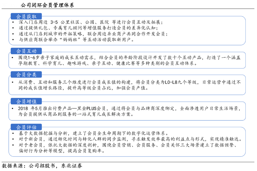經(jīng)典案例:根據(jù)公司招股書、東北證券等綜合資訊表明,孩子王公司建立以會員制度為基礎(chǔ)的單客經(jīng)營模式,從互動到產(chǎn)生情感黏性,再到成為高產(chǎn)值會員,最后高產(chǎn)值會員帶動潛在會員,一整套會員獲取和管理模式高度有效,經(jīng)過多年發(fā)展,公司會員人數(shù)快速提升,截至 2022 年末,會員人數(shù)超 6000 萬人, 2022 年會員貢獻收入占公司全部母嬰商品銷售收入的 96%以上。