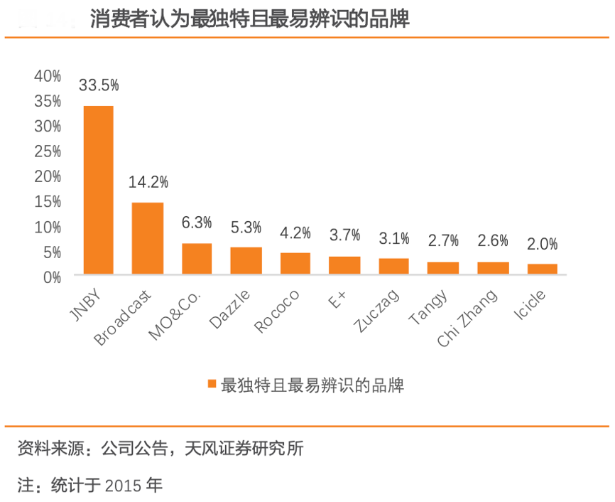 經(jīng)典案例:根據(jù)公司公告、天風(fēng)證券研究所等綜合資訊表明,結(jié)合灼識咨詢,JNBY在中國被視為最獨(dú)特且最易識別的女士服裝設(shè)計(jì) 師品牌,品 牌認(rèn) 知度排 名第一;按重復(fù) 購買客 戶數(shù)計(jì) ,在中 國十大 女士服 裝設(shè)計(jì) 師品牌 中 享有最高 品牌忠 誠度。