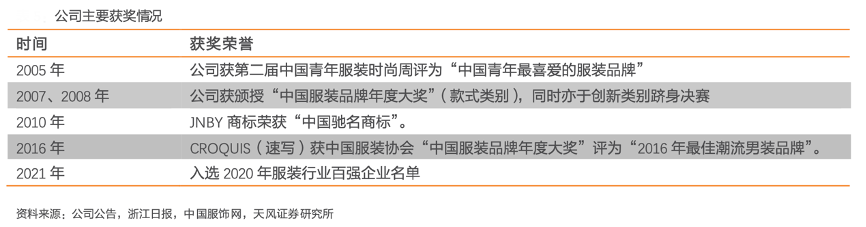 經(jīng)典案例:根據(jù)公司公告、浙江日報(bào)、中國服飾網(wǎng)、天風(fēng)證券研究所等綜合資訊表明,江南布衣品牌理念為“自然、自我”,公司的核心價(jià)值為“更好設(shè)計(jì)、更好生活”,致力于打造中國最好的設(shè)計(jì)平臺。品 牌 多 次 獲 獎, 倍受 消費(fèi)者 認(rèn)可。
