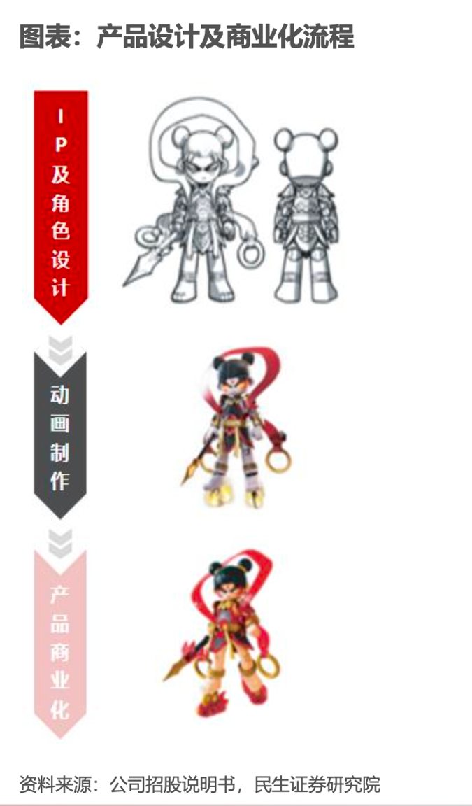 經(jīng)典案例:根據(jù)公司招股說明書、民生證券研究院等綜合資訊表明,布魯可的IP及角色均根據(jù)經(jīng)典的中國文學(xué)作品人物以及在機(jī)甲宇宙中重新詮釋 的潛力進(jìn)行精心挑選,每個(gè)選定的角色均將標(biāo)志性形象與創(chuàng)新設(shè)計(jì)相結(jié) 合,通過細(xì)節(jié)傳達(dá)角色的特征及其文化元素。