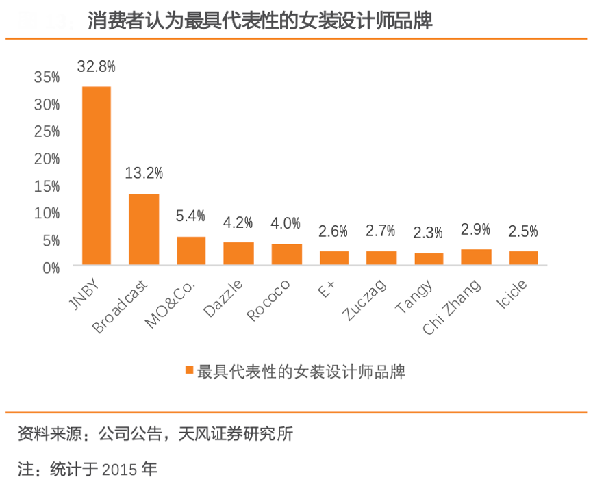 經(jīng)典案例:根據(jù)公司公告、天風(fēng)證券研究所等綜合資訊表明,中國(guó)設(shè)計(jì)師品牌時(shí)裝市場(chǎng)相對(duì)分散,2015 年以零售額 計(jì)算十大市場(chǎng)參與者占市場(chǎng)份額的 43.2%。集團(tuán)于 2015 年在設(shè)計(jì)師品牌時(shí)裝公司中取得最 高的零售額及 9.6%的市場(chǎng)份額,占中國(guó)總體服裝市場(chǎng)份額 0.2%,是 2015 年中國(guó)最大的設(shè)計(jì)師品牌時(shí)裝公司。