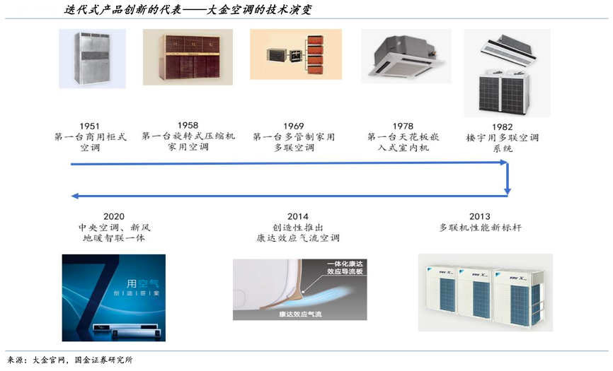 經(jīng)典案例:根據(jù)大金官網(wǎng)、國(guó)金證券研究所等綜合資訊表明,迭代式的產(chǎn)品力提升相比突變式更常見,尤其對(duì)于一些已占據(jù)份額優(yōu)勢(shì)的龍頭企業(yè)來說。迭代式的速度會(huì)隨著時(shí)間流逝逐漸減慢,越到產(chǎn)品后期,迭代式的創(chuàng)新難度越大。
