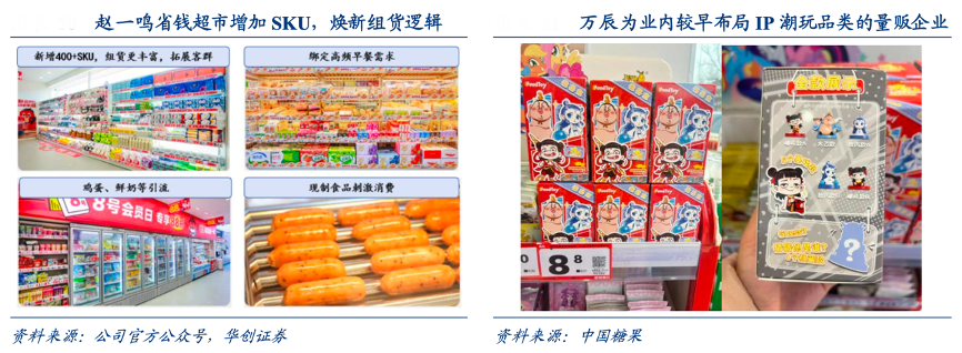 經(jīng)典案例:根據(jù)公司交流、草根調(diào)研、華創(chuàng)證券等綜合資訊表明,零食量販企業(yè)順應(yīng)趨勢、陸續(xù)加碼,并通過協(xié)調(diào)定價、聯(lián)名、定制化包裝等降低對價盤的擾動,如蒙牛、香飄飄與零食很忙聯(lián)合生產(chǎn)“XXXL 型”產(chǎn)品,以及定制化生產(chǎn)小包裝產(chǎn)品在量販渠道鋪貨。