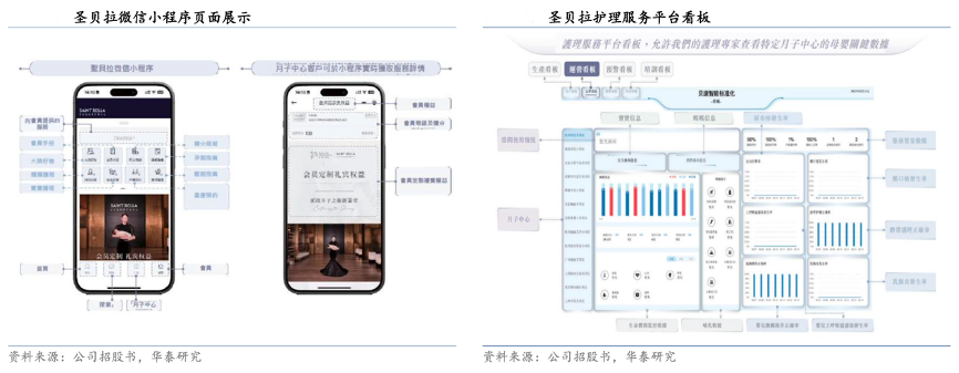 經(jīng)典案例:根據(jù)公司招股書、華泰研究等綜合資訊表明,圣貝拉面向 C 端消費(fèi)者,打造了便捷的小程序服務(wù)入口,用戶可隨時查看服務(wù)詳情,數(shù)據(jù)實時更新,操作簡單直觀。