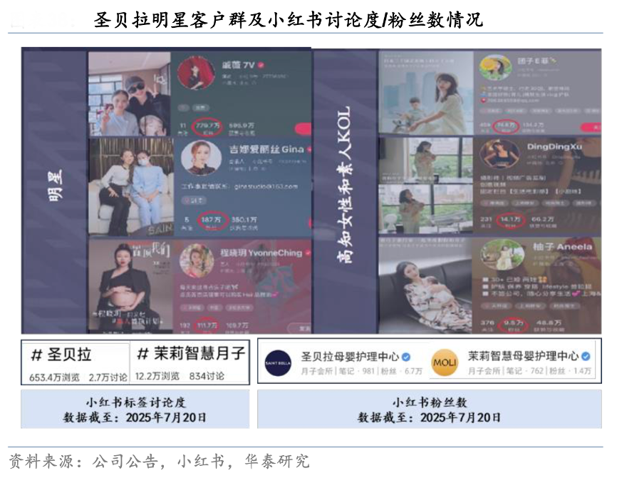 經(jīng)典案例:根據(jù)公司公告、小紅書、華泰研究等綜合資訊表明,圣貝拉錨定高消費(fèi)力客群心智,品牌力逐步轉(zhuǎn)化為身份符號,進(jìn)一步強(qiáng)化了市場地位。2023 年 12 月公司榮獲年度奢華家庭卓越生活獎(Robb Report Hong Kong)。吉娜、戚薇、李艾等女星曾打卡入住,全網(wǎng)明星客戶粉絲量 1 億+。