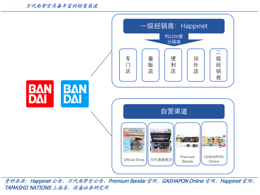經(jīng)典案例:根據(jù)Happinet公告、萬代南夢(mèng)宮公告、Premium Bandai官網(wǎng)、GASHAPON Online官網(wǎng)、Happinet官網(wǎng)、TAMASHII NATIONS上海店、國(guó)盛證券研究所等綜合資訊表明,萬代自 2019 年起加速布局線下 GASHAPON 專賣體系,截至 2024 年 3 月,已在日本境內(nèi)建立 101 家 GASHAPON Department Stores 與 211 家 GBO(Gashapon Bandai Official Shop),合計(jì)門店數(shù)達(dá) 312 家,平均每年新增門店近 80 家,推動(dòng)蛋)商品從邊 角擺設(shè)向核心零售業(yè)態(tài)躍遷。