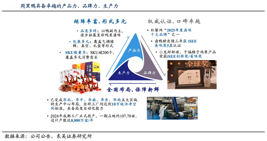 經(jīng)典案例:根據(jù)公司公告、東吳證券研究所等綜合資訊表明,周黑鴨具備卓越的產(chǎn)品力、品牌力、生產(chǎn)力。