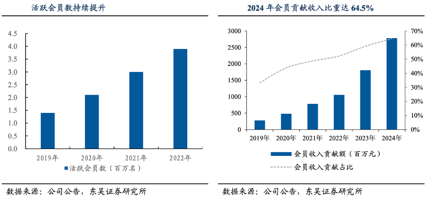 經(jīng)典案例:根據(jù)公司公告、東吳證券研究所等綜合資訊表明,達(dá)美樂會員體系加強(qiáng)優(yōu)質(zhì)客群綁定,有效提升用戶粘性及復(fù)購率:2024 年會員收入貢獻(xiàn)達(dá) 27.83 億元,同比增長 54%,收入占比達(dá) 64.5%。