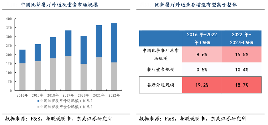 經(jīng)典案例:根據(jù)F&S、招股說明書、東吳證券研究所等綜合資訊表明,達(dá)美樂外送打造差異化,堅守“三十分鐘必達(dá),遲到送免費比薩券”的承諾;根據(jù) F&S 數(shù)據(jù),2022 年中國比薩餐廳行業(yè)中,外送規(guī)模已達(dá) 218 億元,占比高達(dá) 58%。