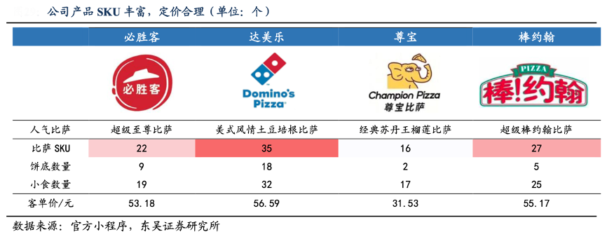 經(jīng)典案例:根據(jù)官方小程序、東吳證券研究所等綜合資訊表明,達(dá)美樂具備特殊配方的專用預(yù)拌粉,面餅松軟有嚼勁,30-40 分鐘后餅底依舊能夠保持松軟狀態(tài),老年人及幼童均能食用。其擁有 30 余種比薩 SKU+接近 20 種餅底和卷邊選擇供消費者自行 DIY、覆蓋 39/59/69 元三個價格帶。