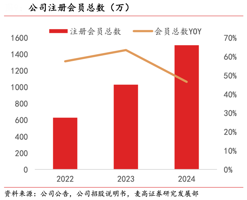 經(jīng)典案例:根據(jù)公司公告、公司招股說明書、麥高證券研究發(fā)展部等綜合資訊表明,2024年毛戈平公司注冊會(huì)員總數(shù)達(dá) 1510 萬人,較 2023 年同比凈增 480 萬人,增幅達(dá) 46.6%。
