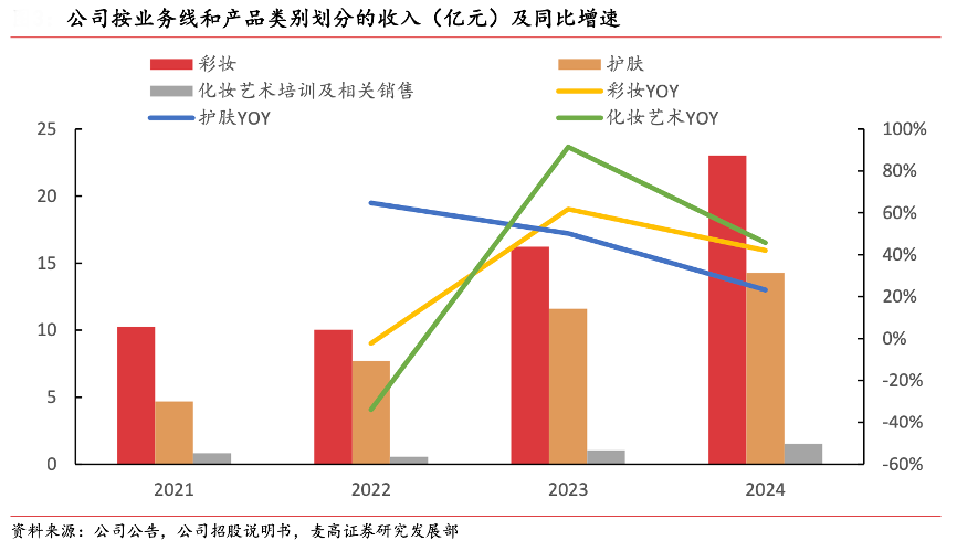 經(jīng)典案例:根據(jù)公司公告、公司招股說(shuō)明書(shū)、麥高證券研究發(fā)展部等綜合資訊表明,毛戈平公司 2024 年護(hù)膚收入達(dá) 14.3 億元, 同比+23.2%;銷(xiāo)量達(dá) 359.8 萬(wàn)件,同比+27.2%;平均售價(jià)為 312.2 元/件;護(hù)膚品中奢華魚(yú)子面膜實(shí)現(xiàn)零售額超 8 億元。