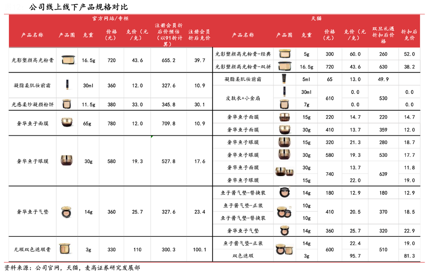 經(jīng)典案例:根據(jù)公司官網(wǎng)、天貓、麥高證券研究發(fā)展部等綜合資訊表明,毛戈平目前公司線上收入仍在快速提升狀態(tài),蓄水池較大。其線下專柜渠道和線上渠道消費(fèi)群體畫像存在較大交叉可以有效豐富客群畫像,擴(kuò)大會(huì)員池。
